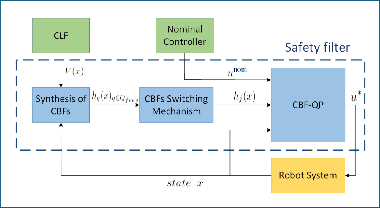控制障碍函数(CBF)是实现机器人安全控制的重要工具,它通过与二次规划(QP)相结合,形成安全滤波器,能够在不改变原始控制策略的前提下,实时修正控制输入,从而确保系统状态始终处于安全区域内。