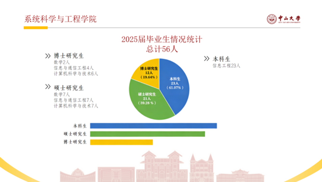 近年来,学院毕业生就业质量稳步提升,升学、就业核心数据持续向好。2025 届毕业生共56人,其中博士研究生12人、硕士研究生21人、本科生23人,整体毕业去向落实率达 100%。