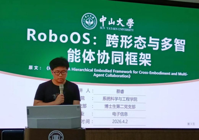 博彩网址 2024级博士研究生蔡睿作了题为《RoboOS:跨形态与多智能体协同框架》的报告。他系统介绍了RoboOS通过云端大脑进行全局任务分解、边缘小脑实现低延迟执行、共享记忆支撑多机器人状态同步的创新设计,分析了一体化开源方案为异构机器人集群协同部署提供的通用底层能力,并展望了具身智能与多机器人协作在动态环境中的发展潜力。